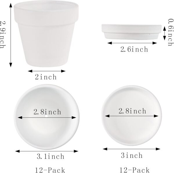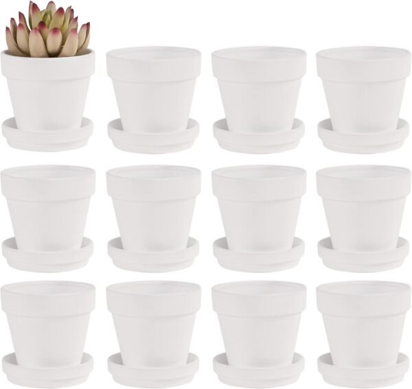 - Mini Clay Pots: 12 small white terracotta pots with saucers for plants, succulents, crafts, wedding favors