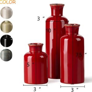 • 【Multifunctional Decorative Vase Set】The bold red design is so stunning,It can be used alone as a simulated flower or flower in a vase, and can be used as a decorative piece for living room, dining room, bedroom, bathroom, table, bookshelf, fireplace, porch, etc. This set of three small red glazed decorative vases is suitable for any design theme Party, wedding, bridal shower.