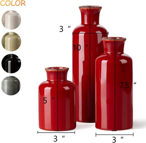 -Ceramic Rustic Vase for Home Decor,- Set of 3 Decorative Vases for Table,Fireplaces Decor,Bookshelf, Living Room,Decorative Touch to Any room’s Decor.(RED)……